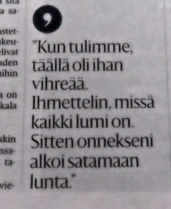 Infine, un collage di articoli a commento della stagione: i turisti affermano che la vacanza in Lapponia e’ costosa, ma vale lo sforzo economico; il record di presenze previsto e uno dei fattori che incuriosiscono maggiormente i turisti: l’aurora boreale. Quest’anno infatti il sole e’ stato molto attivo e le aurore non sono mancate.