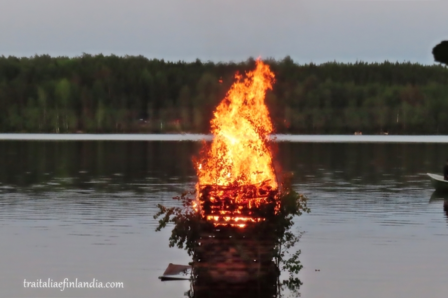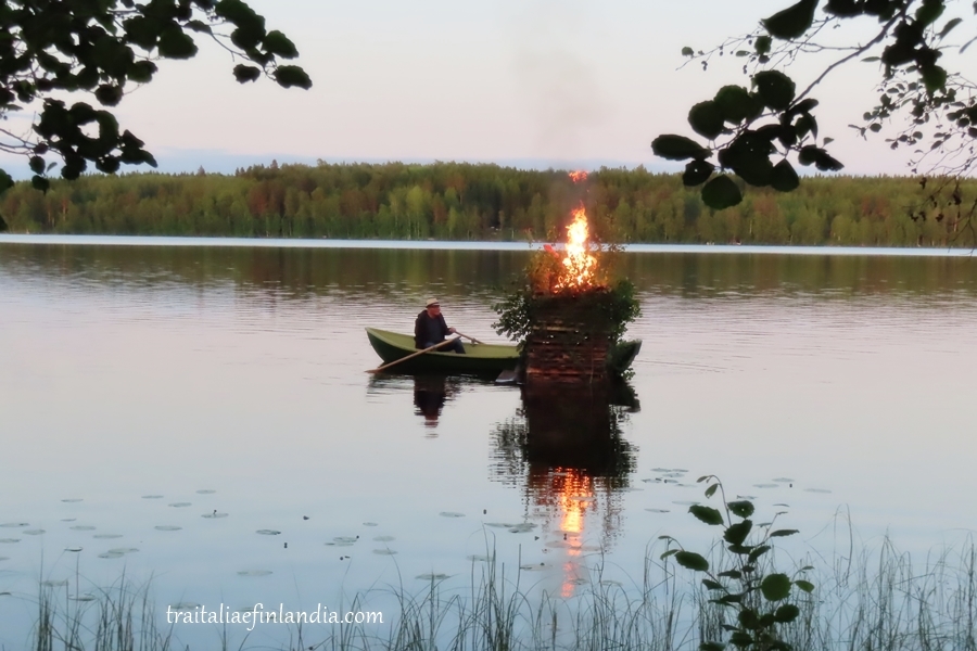 Non sempre e’ possibile realizzare il falo’ in estate in Finlandia,  dipende dal meteo e soprattutto dipende da quanta umidita’ c’e’ in natura:  molte estati vige infatti il divieto di accendere fuochi,  per non provocare incendi boschivi.  Il divieto vale anche per i falo’ sull’acqua.  Quest’anno invece ha piovuto in abbondanza nel mese di giugno e abbiamo potuto godere della sagra con falo’.
