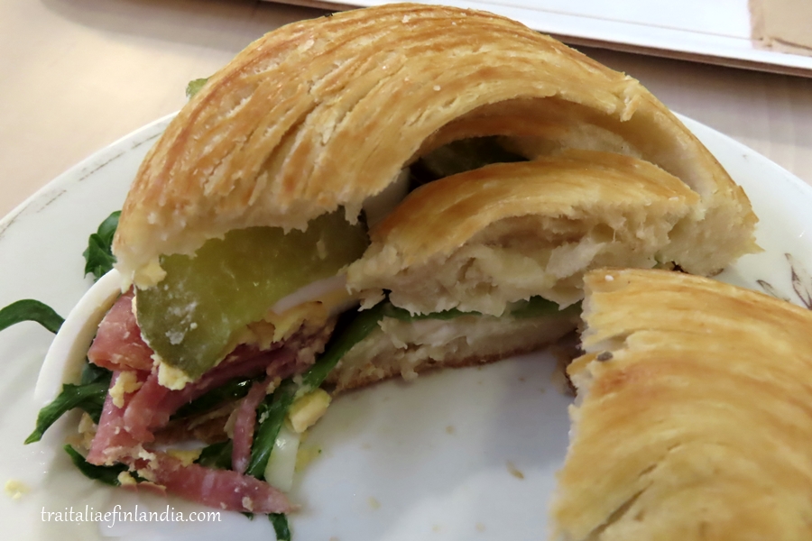Dear readers of my blog, today I will share with you some photos of sandwiches or quick snacks that you can find in bars and cafes in Finland if you should come to spend time here. Let’s start with some excellent filled croissants.