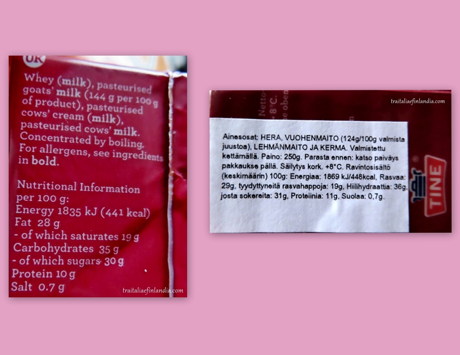 Today Tine is subject to strict regulations and is produced with very modern methods but following the tradition, which requires that both goat and cow milk be used. After having been a product of secondary importance for a long time, today Tine has become a valuable product, for the uniqueness of its taste and is sold in small and rather expensive packages: a 250 gram cube here in Finland costs around 7 euros.