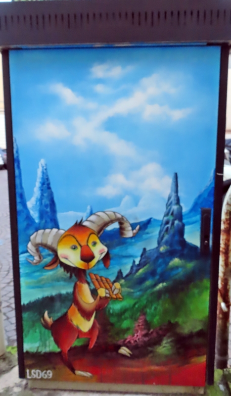 Good morning, readers! Today I’m sharing with you some murals I saw in downtown Verona. They’re painted on post boxes, telephone exchanges…in various parts of the city.
