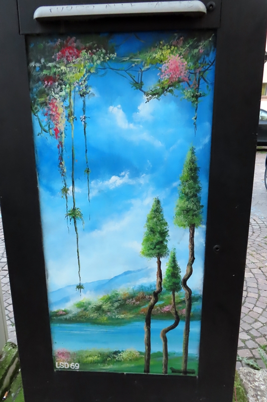 Good morning, readers! Today I’m sharing with you some murals I saw in downtown Verona. They’re painted on post boxes, telephone exchanges…in various parts of the city.