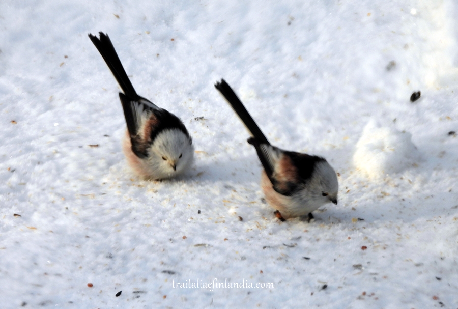 Beautiful pictures of the snowy trees and of course of the birds, too. The long-tailed tits are so cute!