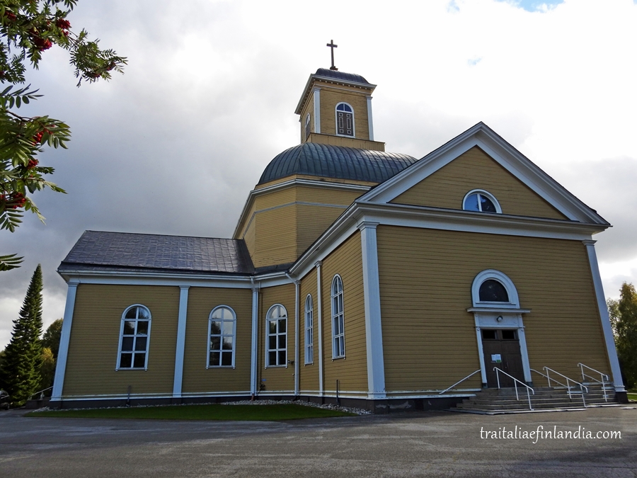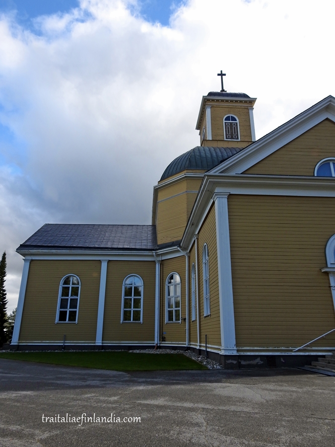 La nostra passeggiata inizia dando uno sguardo alla chiesa lignea, in pieno centro. Edificata nel primo ‘800, la chiesa dovette essere restaurata completamente dopo la Guerra d’inverno, l’invasione russa del 1939, poiche’ i bombardamenti la resero inservibile. Purtroppo l’abbiamo trovata chiusa, ma il suo stile Neoclassico lo ritroviamo in molte chiese finlandesi.