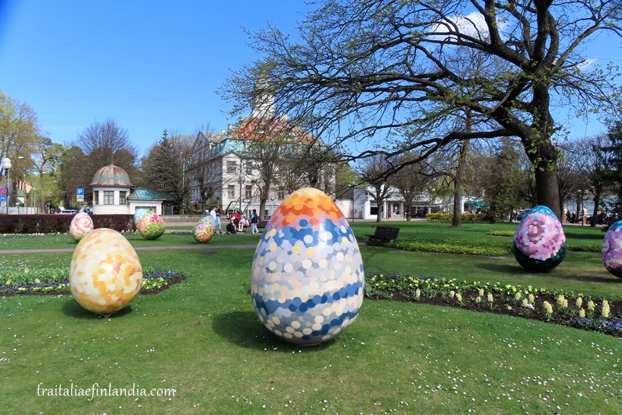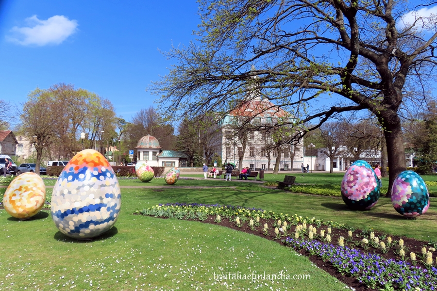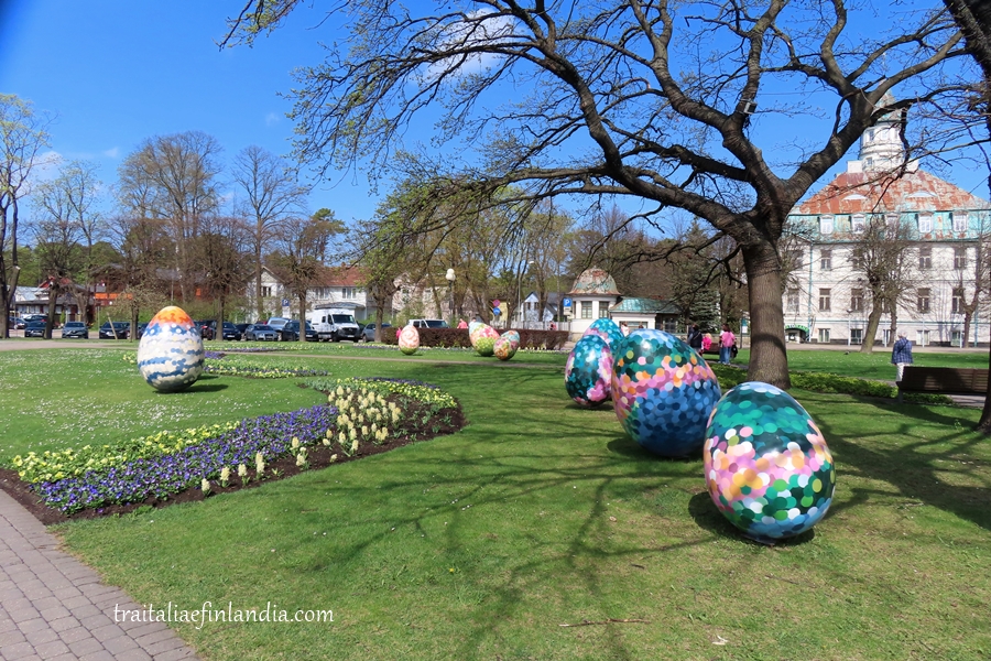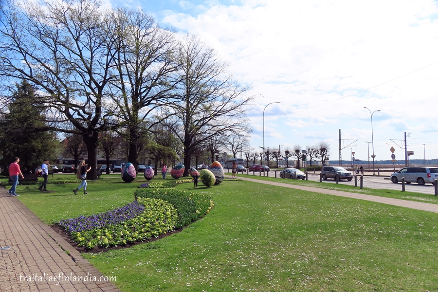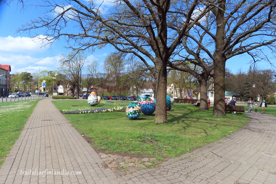 Buona Pasquetta, cari amici! Oggi condivido con voi alcune immagini di Jurmala, la localita’ principale che si trova sulla lunga spiaggia baltica della costa Lettone. A Pasqua il parco cittadino era decorato con queste graziose uova giganti. Un effetto davvero primaverile, insieme ai primi fiori e alle timide pratoline.