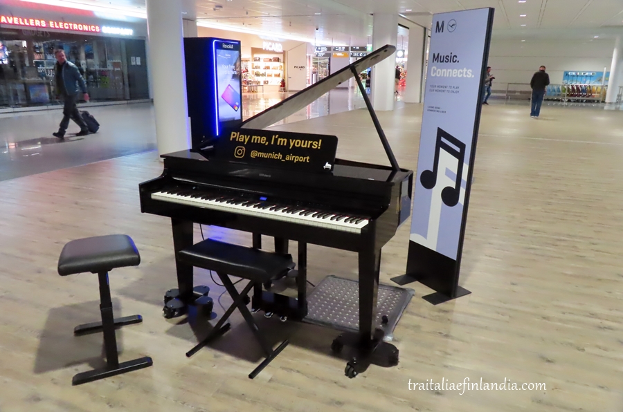 Nel terminal 2 dell’aeroporto di Monaco di Baviera, nel concourse K, c’e’ un angolo dedicato alla bellezza e alla cultura della musica: un pianoforte aperto e pronto per essere suonato da chi vuole. E in piu’ con un chiaro messaggio: la Musica connette.